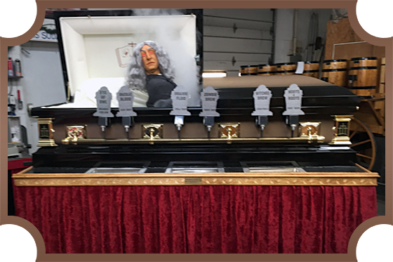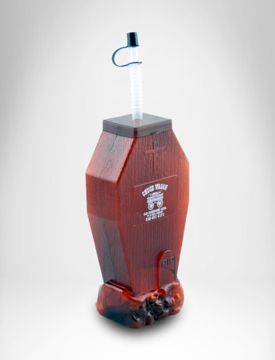 This coffin soda dispenser is equipped with animatronics, smoke and a bag in a box soda system. Coffin cups and sodas available.