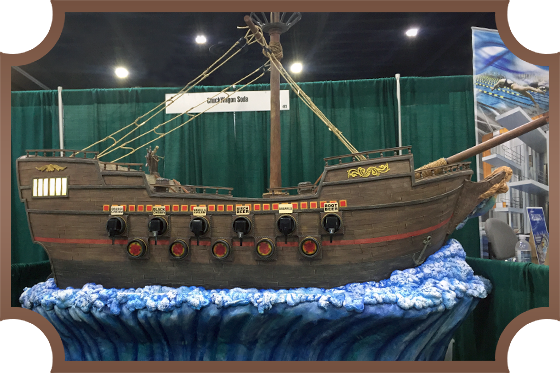 This pirate ship soda dispenser has lights, sounds and smokin’ cannons. Pirate themed cups are available for this bag in a box soda system.