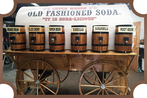 This old fashioned wagon soda dispenser consists of a self contained bag in a box soda system. Multiple cups and soda flavors available.